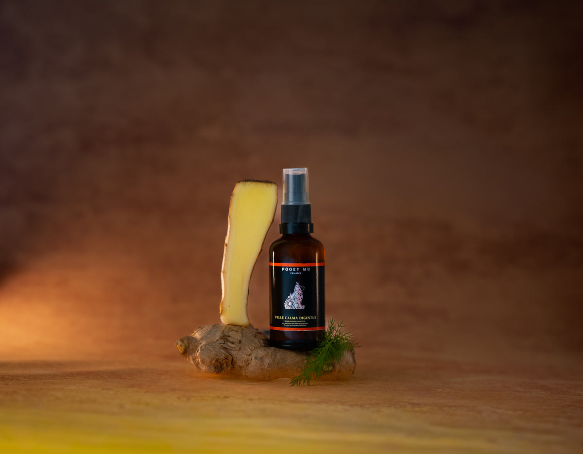 Pelle Calma Digestus is the digestive comfort mist from Pooey Mu, designed to support a sense of abdominal balance and well-being in dogs.